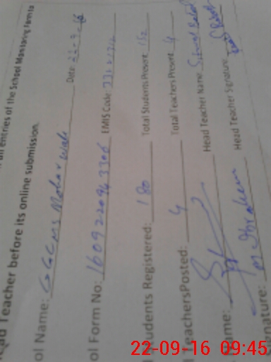 | Name: Sa**** Pe**** Designation: (School Headmaster's/Headmistress's) Sst Phone/Cell Number: 03**** |