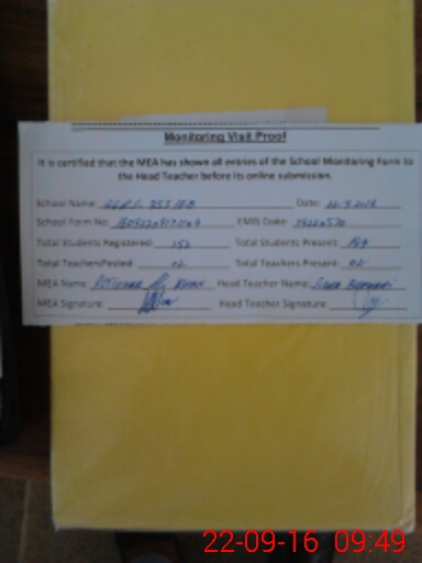 | Attendance Register | Head Teacher | MEA with School | Visit Proof |