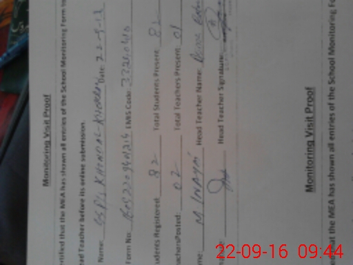 | Attendance Register | Head Teacher | MEA with School | Visit Proof |