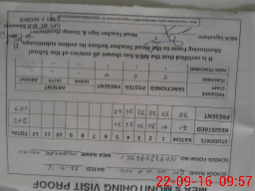 | Attendance Register | Head Teacher | MEA with School | Visit Proof |