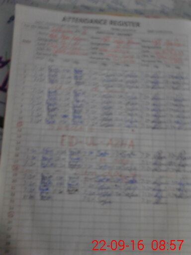 | CNIC | Full Name | Designation | R/C | Absence During Last Calender Month |