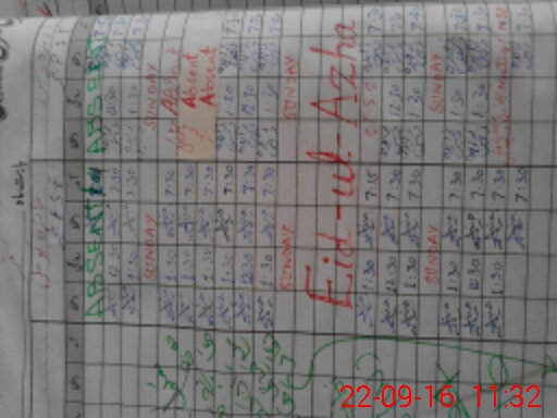 | CNIC | Full Name | Designation | R/C | Absence During Last Calender Month |