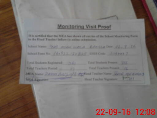 | Attendance Register | Head Teacher | MEA with School | Visit Proof |
