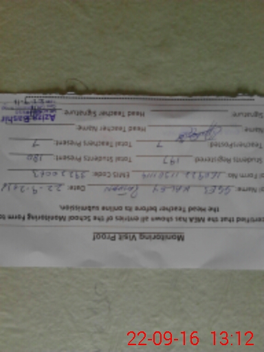 | Monitoring Date: 22-09-2016 | Start Time: 22-09-2016 11:30 AM | End Time: 22-09-2016 01:13 PM | Name of MEA: Gh**** Mu**** Mu**** (R**** | |