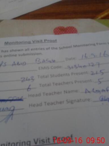 | EMIS Code: 31340127 | Name of School: GPS ABID BAGH | |||