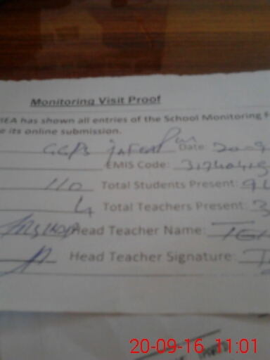 | Attendance Register | Head Teacher | MEA with School | Visit Proof |