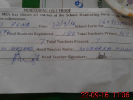 | Remarks (Use Separate Page if Required): SSE h m Mubarka Khan of HM of school name not on Tab | |||||