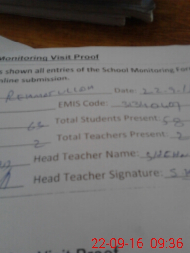 | Attendance Register | Head Teacher | MEA with School | Visit Proof |