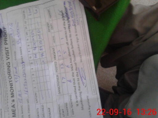 | Monitoring Date: 22-09-2016 | Start Time: 22-09-2016 01:06 PM | End Time: 22-09-2016 01:31 PM | Name of MEA: Z.**** Ba**** Al**** | |