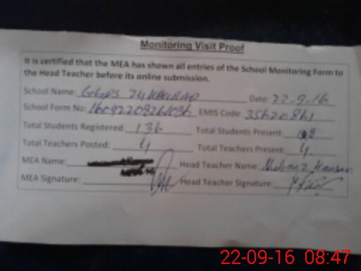 | Certified that this School was Inspected by the Undersigned MEA/DMO Today and the Information Stated Above is as Per Record. | |||||