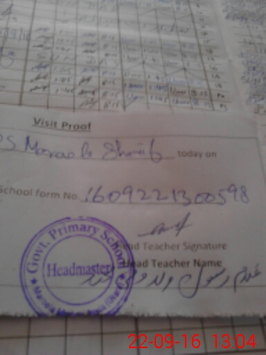 | School Visited by School Health & Nutrition Supervisor (No. of Visits) | Name1: | Rai Khalid | Name2: | ||