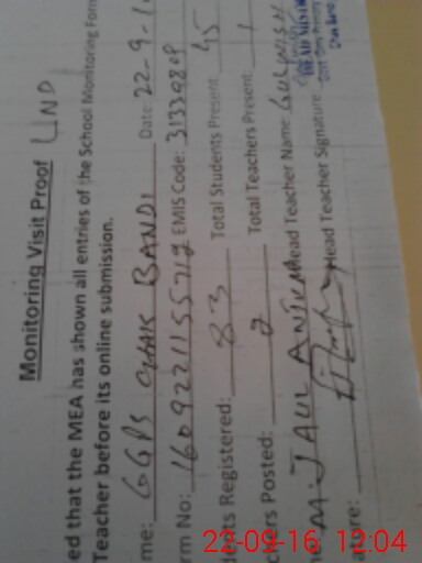 | EMIS Code: 31330809 | Name of School: GGPS CHAK BANDI | |||