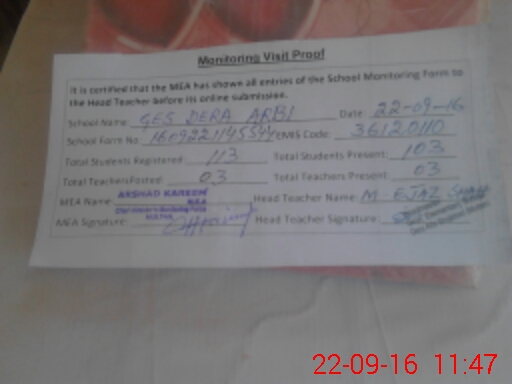 | EMIS Code: 36120110 | Name of School: GES DERA ARBI P/O THATH GHALWAN | |||