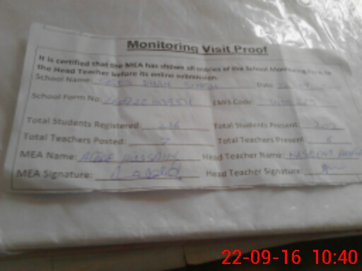 | Attendance Register | Head Teacher | MEA with School | Visit Proof |
