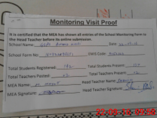 | Attendance Register | Head Teacher | MEA with School | Visit Proof |