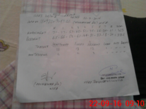 | Monitoring Date: 22-09-2016 | Start Time: 22-09-2016 08:07 AM | End Time: 22-09-2016 09:11 AM | Name of MEA: Mu**** Al**** ex**** | |