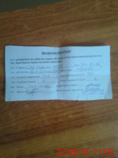 | Attendance Register | Head Teacher | MEA with School | Visit Proof |