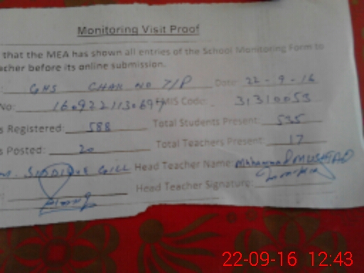 | EMIS Code: 31310053 | Name of School: GHS CHAK NO 7/P KHANPUR | |||