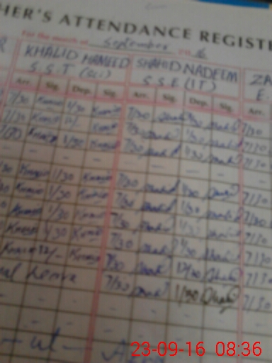 | CNIC | Full Name | Designation | R/C | Absence During Last Calender Month |