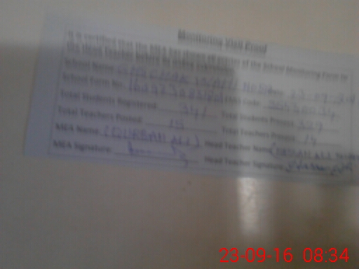 | Certified that this School was Inspected by the Undersigned MEA/DMO Today and the Information Stated Above is as Per Record. | |||||