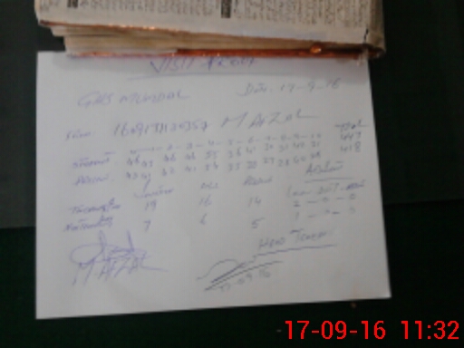 | Monitoring Date: 17-09-2016 | Start Time: 17-09-2016 09:47 AM | End Time: 17-09-2016 11:33 AM | Name of MEA: M.Af**** (R**** | |