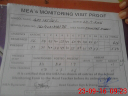 | Attendance Register | Head Teacher | MEA with School | Visit Proof |