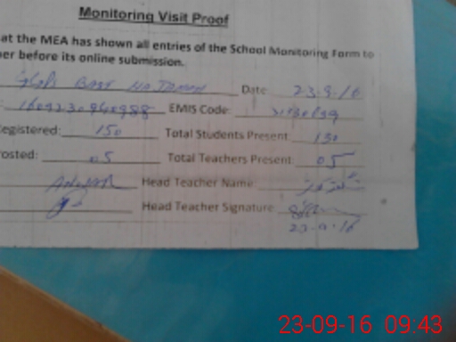 | Attendance Register | Head Teacher | MEA with School | Visit Proof |