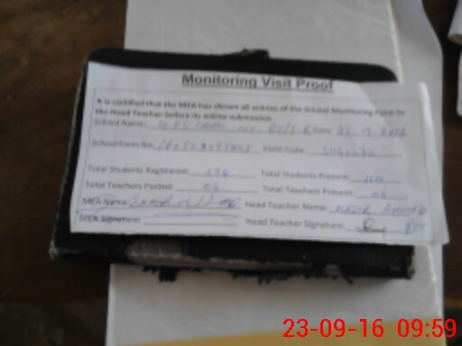 | Attendance Register | Head Teacher | MEA with School | Visit Proof |