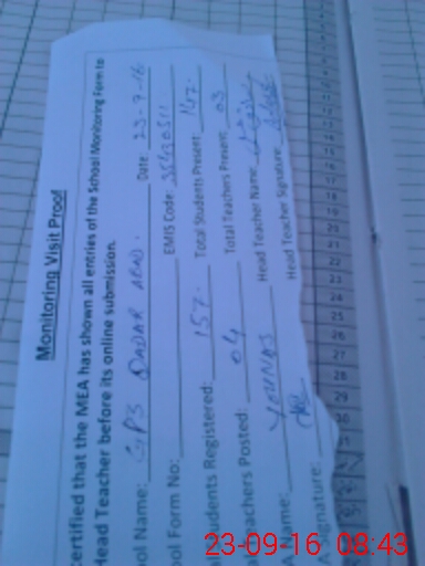 | Attendance Register | Head Teacher | MEA with School | Visit Proof |