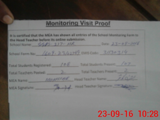 | Attendance Register | Head Teacher | MEA with School | Visit Proof |