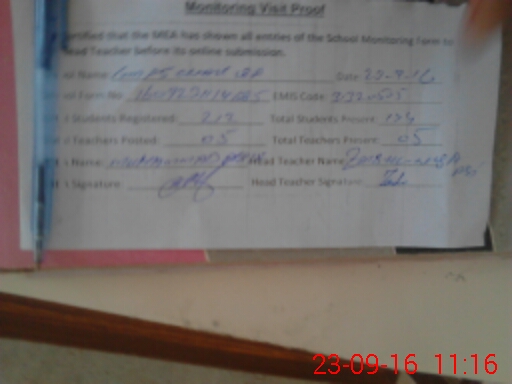 | Attendance Register | Head Teacher | MEA with School | Visit Proof |