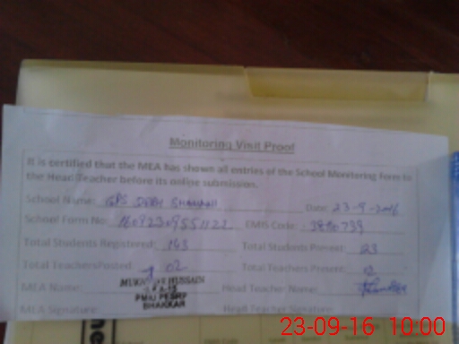 | Certified that this School was Inspected by the Undersigned MEA/DMO Today and the Information Stated Above is as Per Record. | |||||