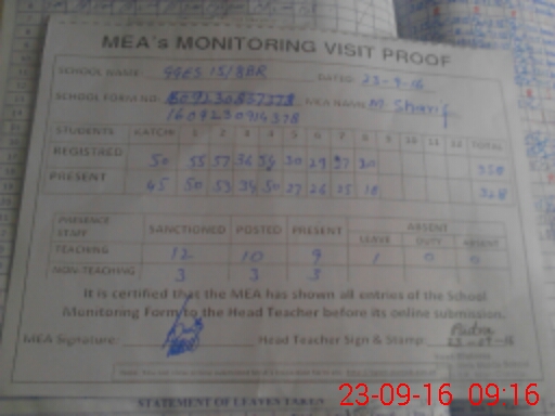 | Attendance Register | Head Teacher | MEA with School | Visit Proof |