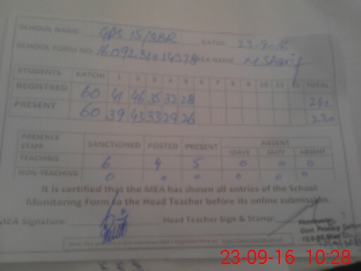 | Attendance Register | Head Teacher | MEA with School | Visit Proof |
