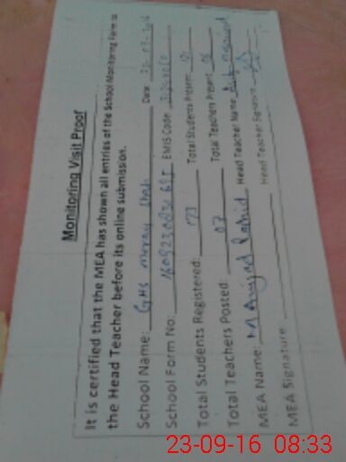 | Attendance Register | Head Teacher | MEA with School | Visit Proof |