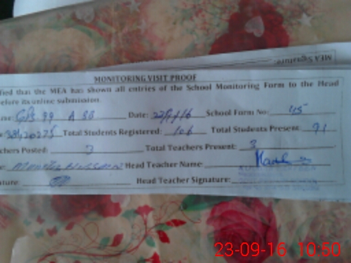 | Name: KA**** PE**** Designation: (School Headmaster's/Headmistress's) PTC/JV Phone/Cell Number: 03**** |