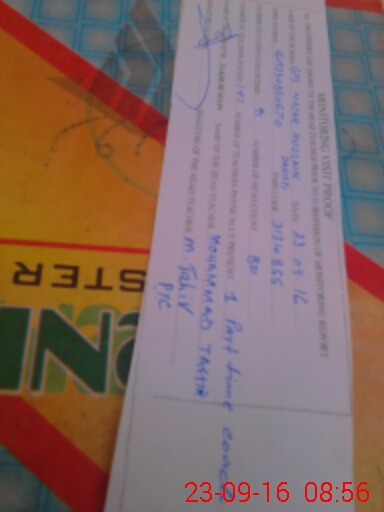 | School Visited by School Health & Nutrition Supervisor (No. of Visits) | 1 | Name1: | Irfan Mahmood | Name2: | Nil |