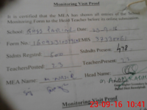 | Certified that this School was Inspected by the Undersigned MEA/DMO Today and the Information Stated Above is as Per Record. | |||||