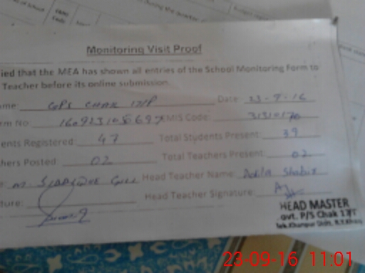 | EMIS Code: 31310170 | Name of School: GPS CHAK NO 17/P KHANPUR | |||