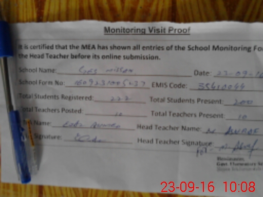 | Attendance Register | Head Teacher | MEA with School | Visit Proof |