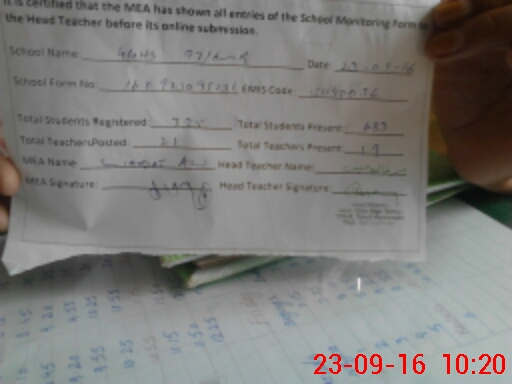 | Attendance Register | Head Teacher | MEA with School | Visit Proof |