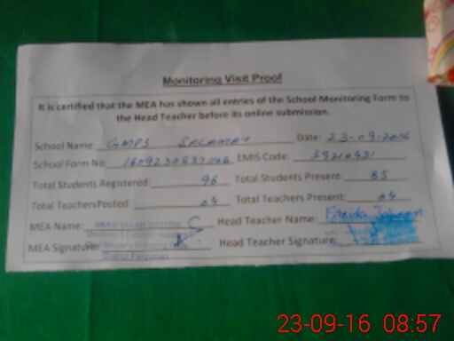 | EMIS Code: 39210431 | Name of School: GMPS CHAK SALAMAT | |||