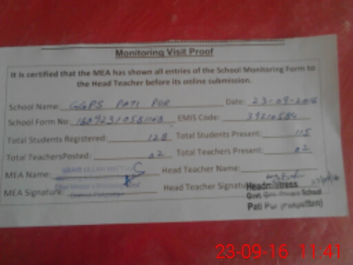 | EMIS Code: 39210584 | Name of School: GGPS PATTI PUR DAKHLI MALIK PUR | |||