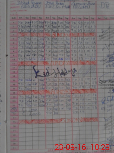 | CNIC | Full Name | Designation | R/C | Absence During Last Calender Month |