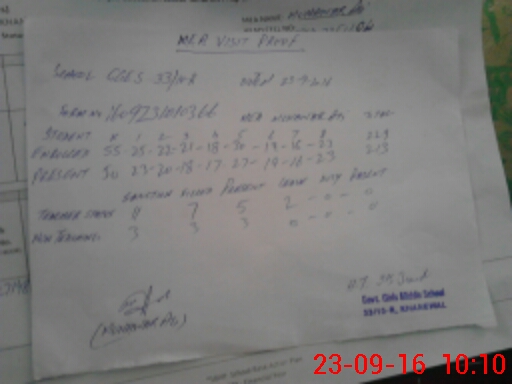 | Monitoring Date: 23-09-2016 | Start Time: 23-09-2016 09:36 AM | End Time: 23-09-2016 10:12 AM | Name of MEA: Mu**** Al**** ex**** | |