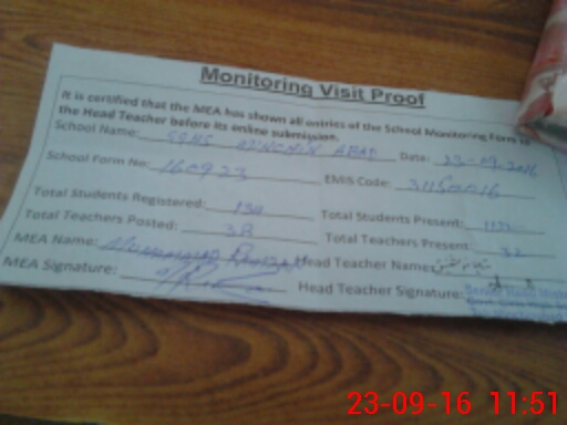| Attendance Register | Head Teacher | MEA with School | Visit Proof |