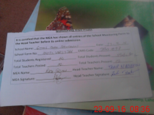 | Certified that this School was Inspected by the Undersigned MEA/DMO Today and the Information Stated Above is as Per Record. | |||||