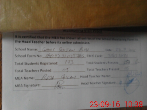 | EMIS Code: 35431076 | Name of School: GMMS SULTAN PURA | |||