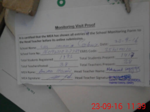 | Certified that this School was Inspected by the Undersigned MEA/DMO Today and the Information Stated Above is as Per Record. | |||||