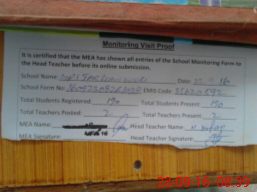 | EMIS Code: 35620592 | Name of School: GPS TARLIAWALE CHAK NO. 13/RB | |||